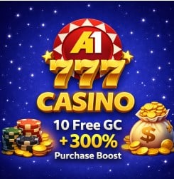 A1 Casino — 10 Free GC + 300% Purchase Boost