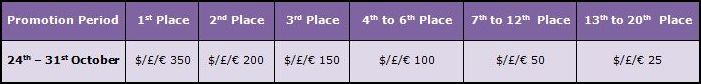 Every $/£/€ 10 wagered on these games will earn them 1 point on the leader board.